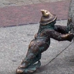Во Вроцлаве, Нижняя Силезия (Dolny Śląsk), есть целое поселение маленьких гномиков. Они постоянно появляются на улицах города, вызывая улыбку прохожих. Эти бронзовые фигурки стоят и на вокзале, и возле Ратуши, и даже во дворе школы и больницы. А все началось в 2001 году, когда на улице Свидницкой стараниями Оранжевой Альтернативы (Pomarańczowej Alternatywy), появился памятник в виде Гнома (Krasnoludka). Через 2 года мэр Вроцлава, продолжая начатую традицию, торжественно открыл на стене одного из зданий на Рынке табличку-вывеску «Музей Гномов» — симпатичную такую вывеску, как раз по росту гнома.