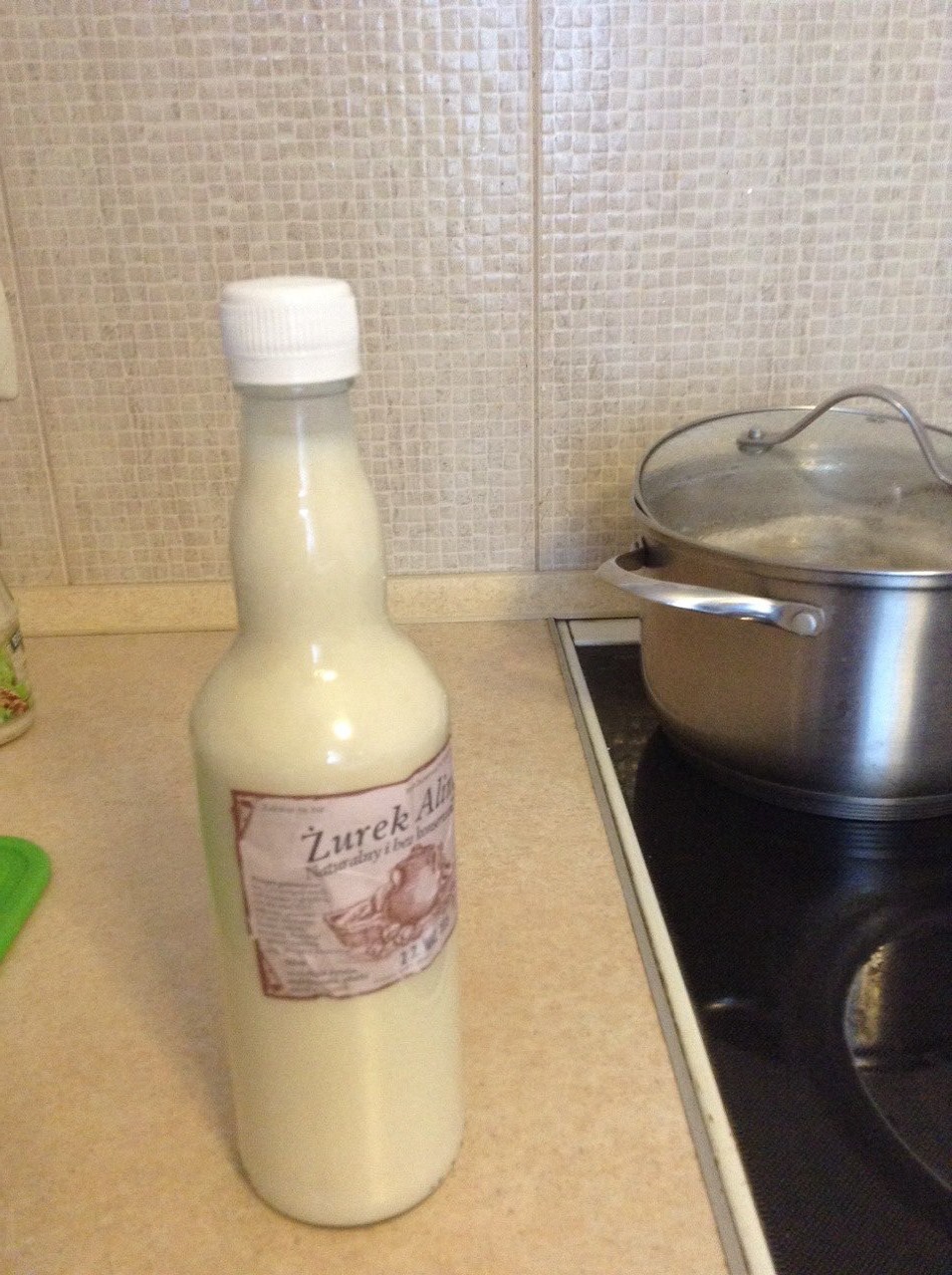 открытием. Рецепт предписывал хорошенько взболтать содержимое. И действительно, после взбалтывания цвет жидкости поменялся с «сывороточного» на белый (сравните картинки). Однако… кто ж знал, что открывать надо аккуратно? После такой встряски будущий журек ринулся на волю при малейшем повороте герметичной крышки. Короче говоря, наш протожурек повел себя, как последняя газировка. В конце концов, недостаток кулинарного опыта был возмещен каким-никаким жизненным и утечка ликвидирована.